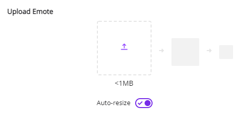 From this page, you’ll have access to follower, subscriber and bits emotes, the upload process for all of them is the same. Click the gray square with a plus mark inside to open the upload emote tab, and uncheck the auto-resize checkmark.