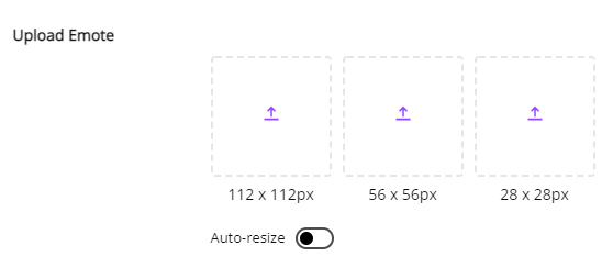 When you uncheck it, you’ll get 3 squares where you’ll upload the 112×112, 56×56 and 28×28 versions of your emote. Simply pick them from your computer and upload each size onto their corresponding square.