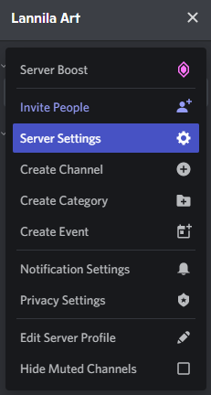 On your server, click the down arrow next to your server name and go to Server Settings.