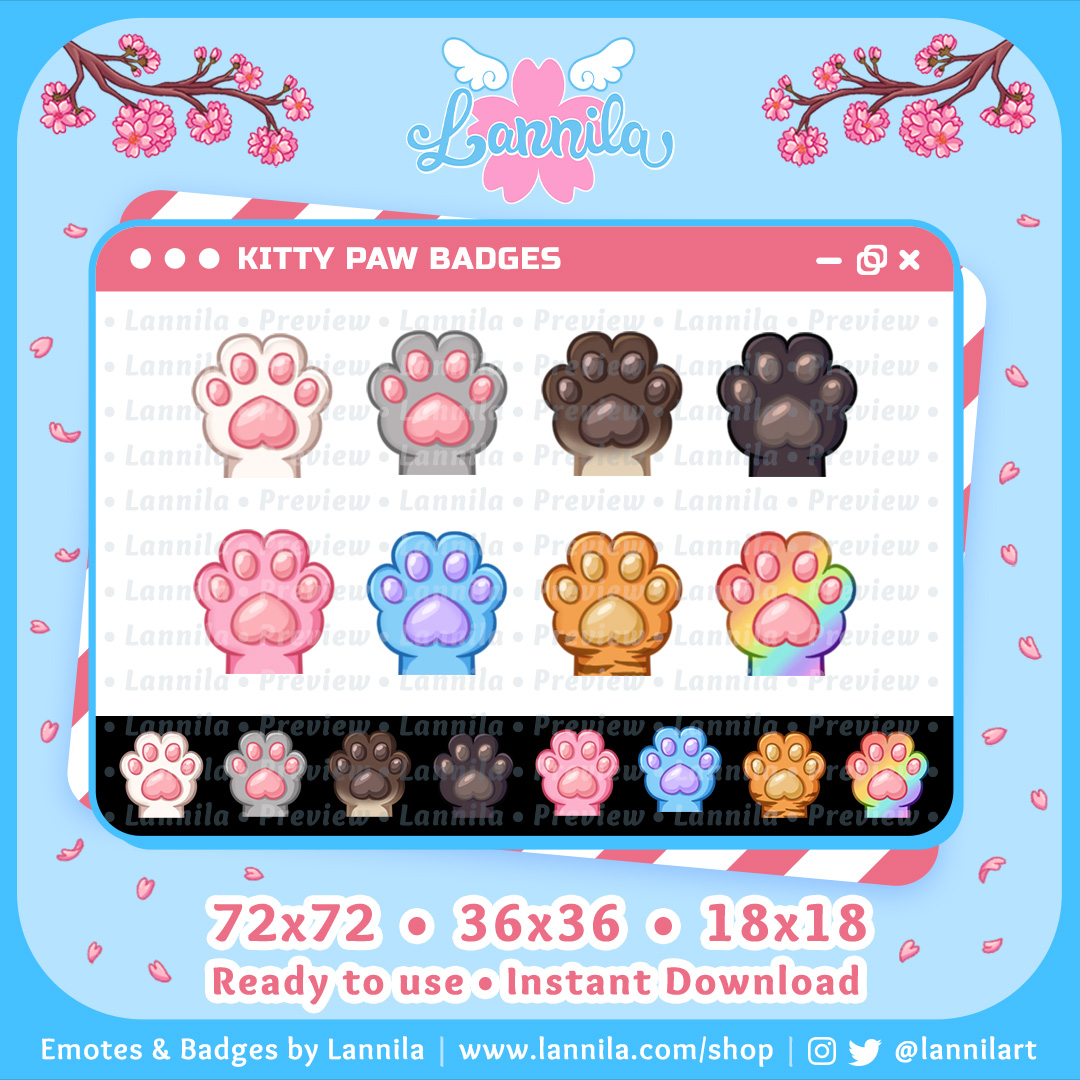 8 KITTY PAW SUB BADGES / BIT BADGES FOR TWITCH YOUTUBE DISCORD